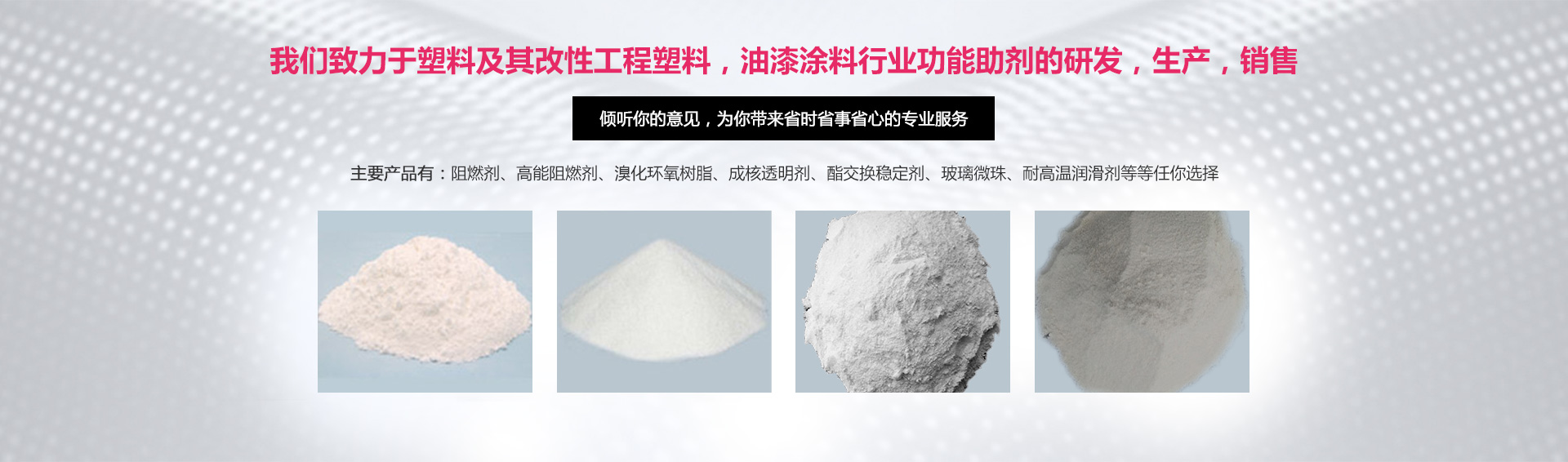 公司全心致力于以下幾個領(lǐng)域:阻燃劑在工程改性塑料的運用,鹵素及其無鹵